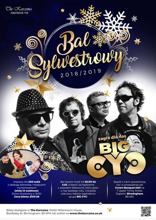 Największy polski Sylwester w Wielkiej Brytanii z udziałem Big Cyca. Jeśli mieszkasz na Wyspach i nie masz jeszcze planów jak powitać Nowy Rok to zapraszamy do Birmingham. Tam w pięknej sali Crown Banquet Hall przy 7 Upper Trinity Street damy koncert, po którym zniknie słynna, angielska flegma