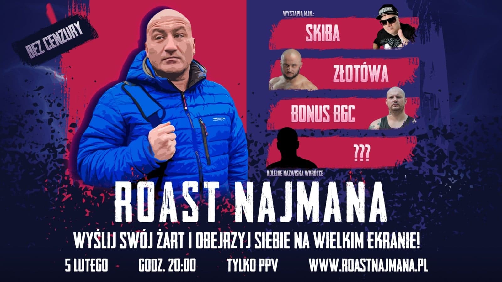 Wielki Roast Marcina Najmana! 5 lutego z udziałem Skiby! Dostępny przez PPV. Zapraszam!